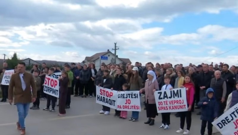 Banorët e fshatit Zajm, me parulla në duar dolën për të protestuar për pronat e tyre.